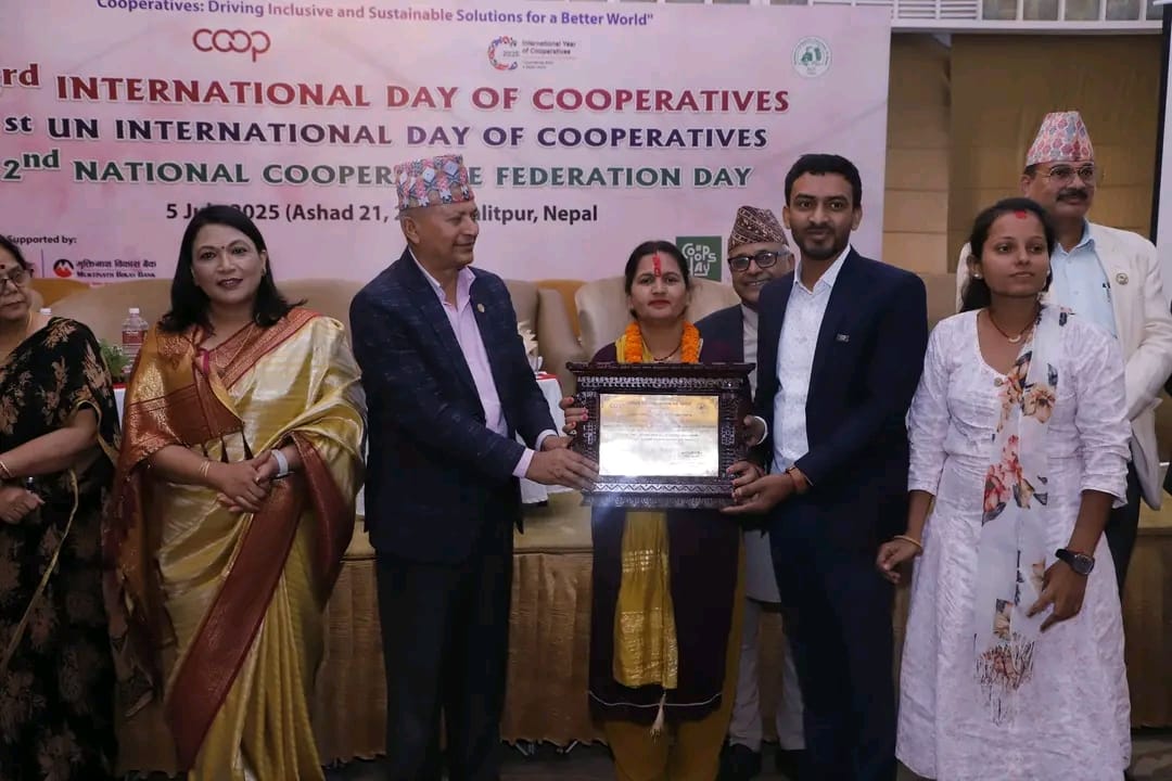 जनकपुरधाम । महिला साना किसान कृषि सहकारी संस्था लि. लक्ष्मीनियाँ मधेशकै उत्कृष्ट सहकारी पुरुस्कारबाट पुरस्कृत भएको छ । शनिबार १०३ औं अन्तर्राष्ट्रिय सहकारी दिवसको अवसरमा सघीय सरकारको भुमी व्यवस्था, सहकारी तथा गरिवी निवारण मन्त्री बलराम अधिकारीको हातबाट पुरस्कृत भएको हो । पुरस्कार संस्थाको अध्यक्ष बबिता देवी यादव, प्रवन्धक सरोज यादव र सह प्रवन्धक रुकमिनी यादव काठमाण्डौं पुगेर ग्रहण गरेका छन् । यो सहकारी लक्ष्मीनियाँ गाउँपालिकामा महिला सशक्तिकरण र कृषकको लागि काम गर्दै आएका छन् । पुरस्कार पाएपछि संस्था प्रवन्धक यादवले थप जिम्मेवार भएर ग्रामिण किसान र महिलाको क्षमता अभिवृद्धिको लागि काम गर्ने रणनीति बनाएका छन् ।